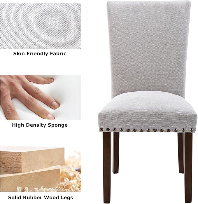 About This 🌈 SIMPLE YET ELEGANT LOOK- Nailhead-trimmed upholstery, clear and clean lines make these parsons chairs a relaxed yet...