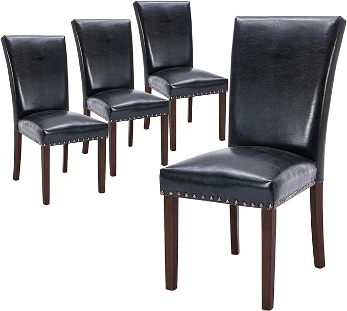 COLAMY Upholstered Parsons Dining Chairs Set of 4, PU Leather Dining Room Kitchen Side Chair with Nailhead Trim and Wood Legs - Black