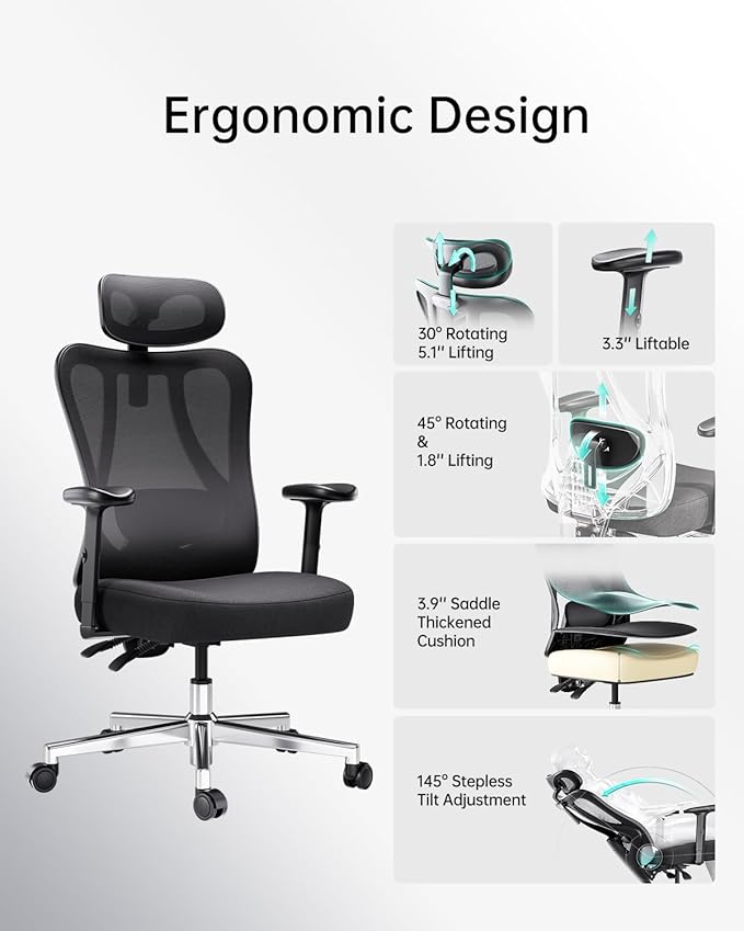 About This 【Comfortable Ergonomic Office Chair】 Hbada P3 Ergonomic office chair is designed to provide maximum comfort and support, with...