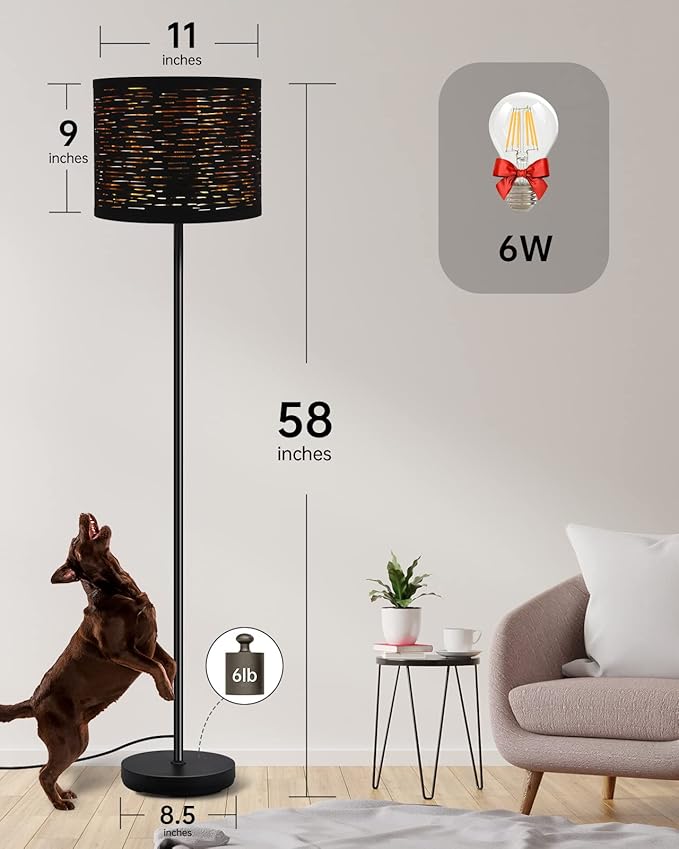 BoostArea Floor Lamp, Standing Lamp, 6W LED Floor Lamps with Black Lampshade, 2700K, Foot Switch, E26 Socket, 58" Tall Metal Pole Lamp, Simple Floor Lamps for Living Room/Bedroom/Farmhouse, Black