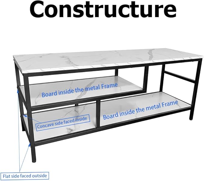 AT-VALY 3-Tier TV Stand Media Console Table with Open Shelving Storage for Living Room Bedroom 47inch for up to 55" TV