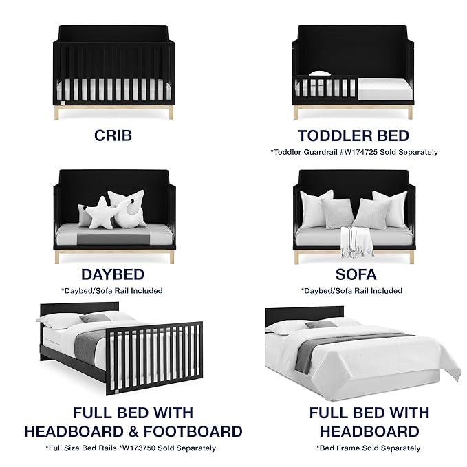 About This 6-IN-1 CONVERTIBLE CRIB: Crib converts to a toddler bed, daybed, sofa, full size bed with headboard and footboard...