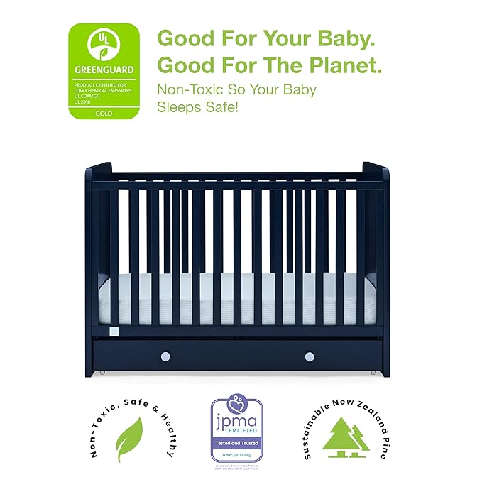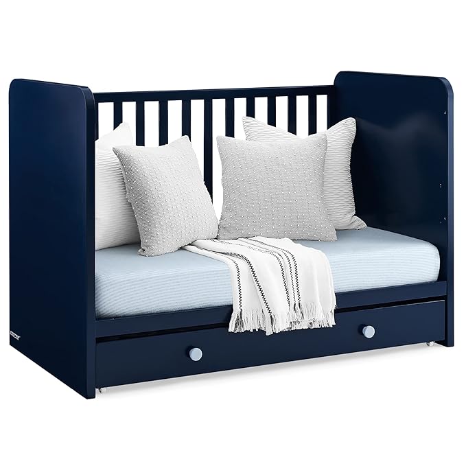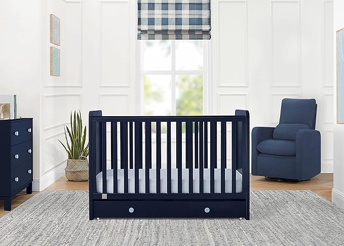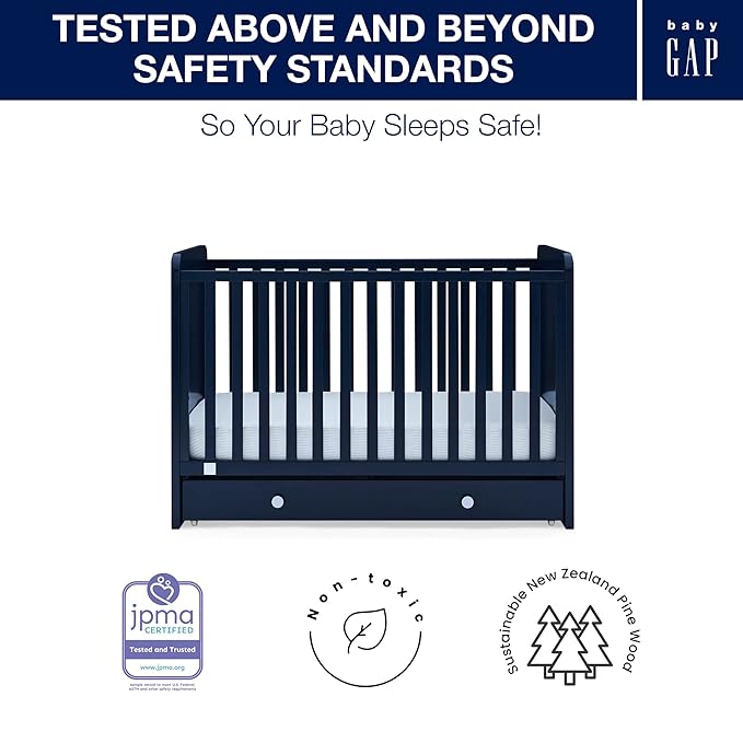 GAP babyGap Graham 4-in-1 Convertible Crib with Storage Drawer - Greenguard Gold Certified, Navy/Light Blue