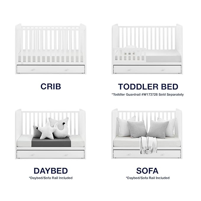 About This 4-IN-1 CONVERTIBLE CRIB: Crib converts to a toddler bed, daybed and sofa (Toddler Guardrail #W173726 sold separately) |...