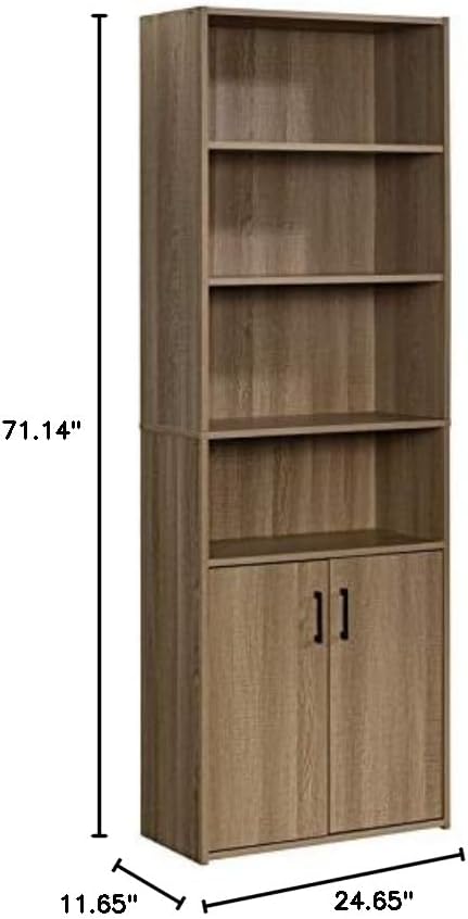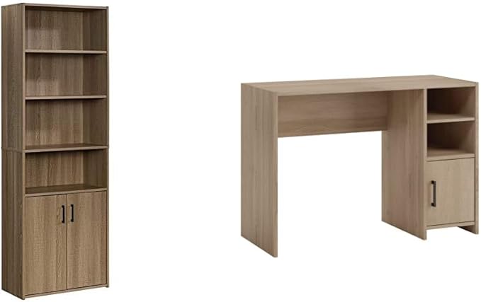 Sauder Beginnings Bookcase with Doors, L: 24.65" x W: 11.65" x H: 71.14", Summer Oak Finish & Beginnings Desk, L: 40.39" x W: 17.48" x H: 28.82", Summer Oak Finish