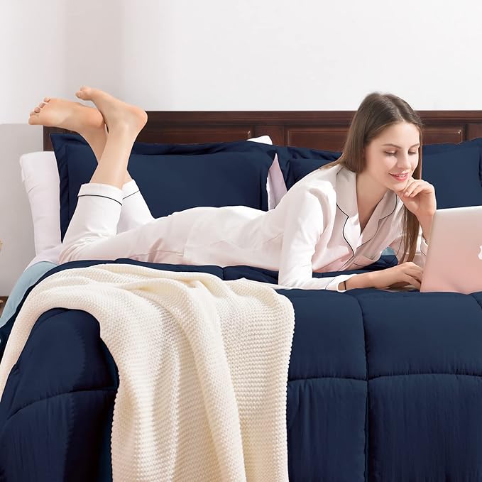 Basic Beyond King Size Comforter Set - Fluffy King Bed Comforter Set for All Seasons - Reversible Blue Comforter Set King - 3 Pieces (1 Comforter + 2 Pillow Shams) - Blue/Sapphire