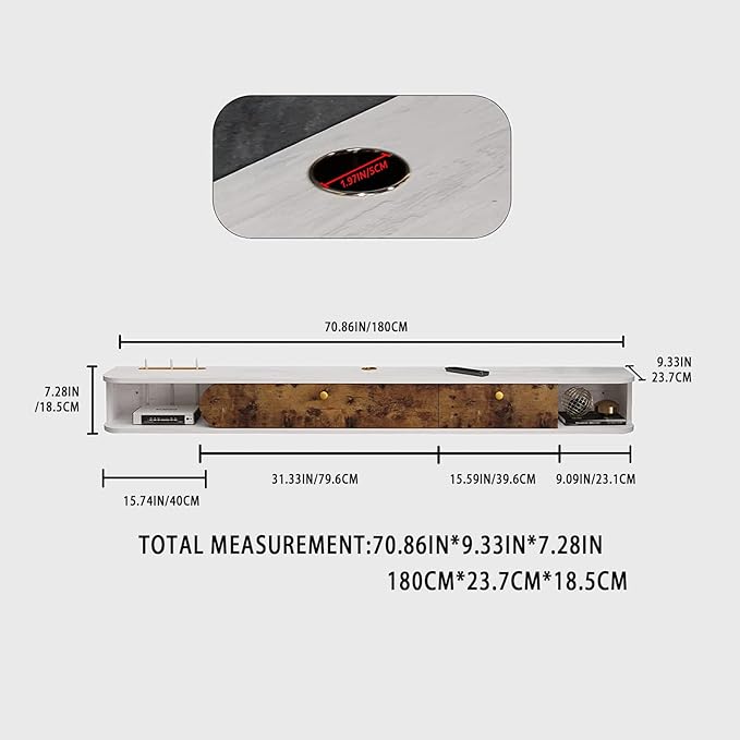 About This [Large Storage Space] Floating TV stand with 1 large door & 1 drawer & 2 cabinets. It helps...