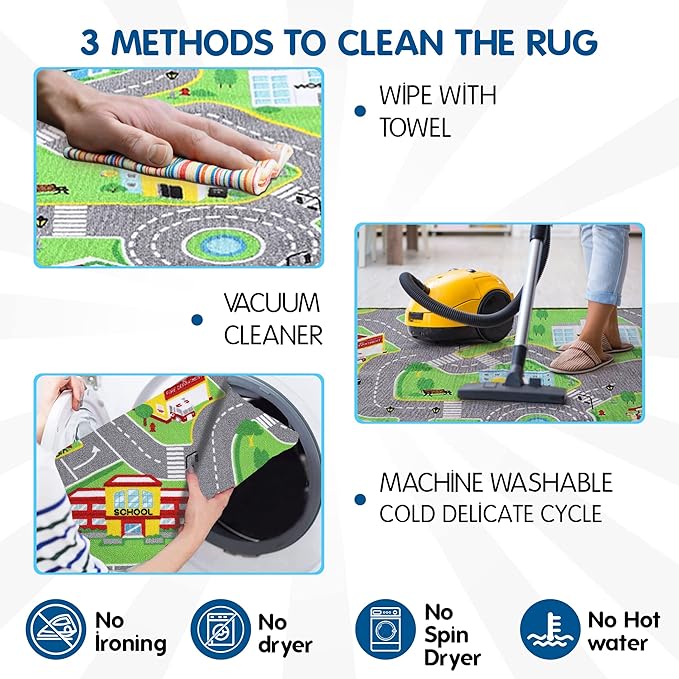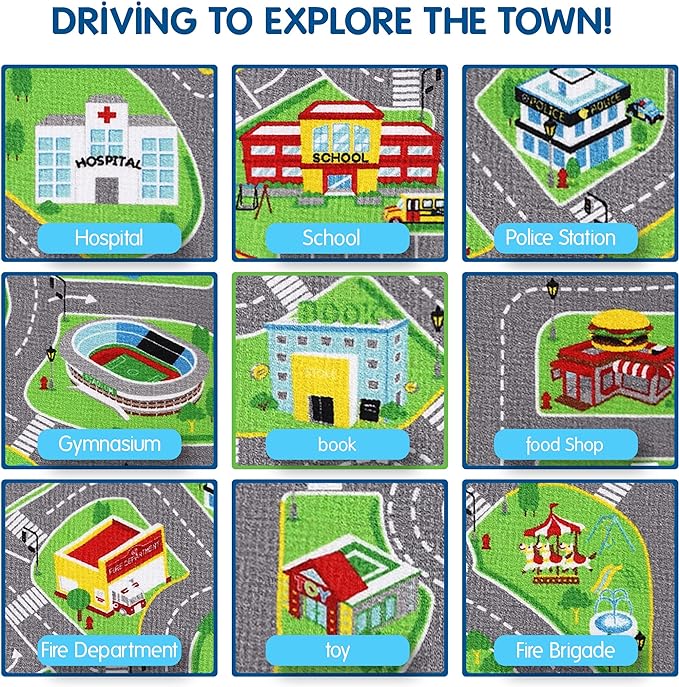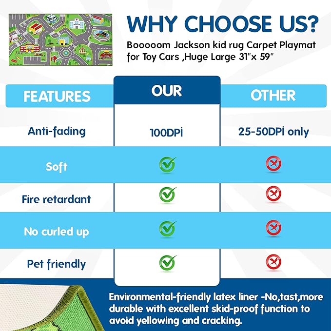 About This Size: car rug play mat for toy cars with a size 31 inches wide by 59 inches long/2.6x4.9ft....