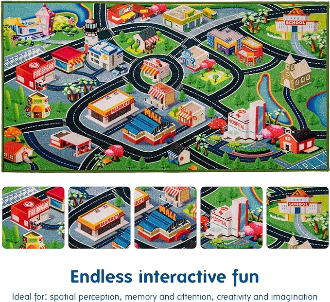 About This 🧡It’s a fun,busy, and exciting car rug track!, 39X79inch/3.3x6.6ft car rug play mat with perfect roads for your...