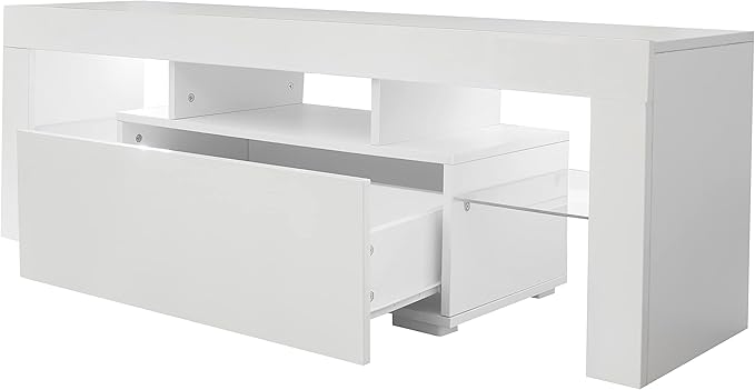 HOUAGI LED TV Stand for Televisions up to 55 Inchs,Modern Entertainment Center with Storage Drawer and Glass shelf, TV Console Table for Living room,Bedroom,White