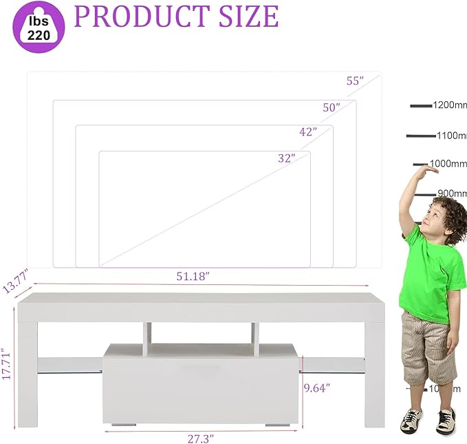 About This 【Modern LED TV Stand】This LED TV stand features built-in LED lights,You can use the remote control to adjust...