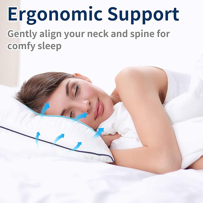 Bed Pillows for Sleeping-2 Pack StandardSize Set of 2 Cooling Pillow for Side Back and Stomach Sleepers, Down Alternative Filling Luxury Soft Quality with Premium Plush pillows (Standard, White)