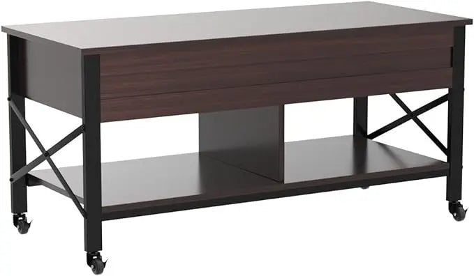 WLIVE Coffee Table, 41" Lift Top Coffee Table with Hidden Compartment, Multi-Function Coffee Table with 4 Wheels and 2 Storage Shelves for Living Room and Bedroom, Espresso