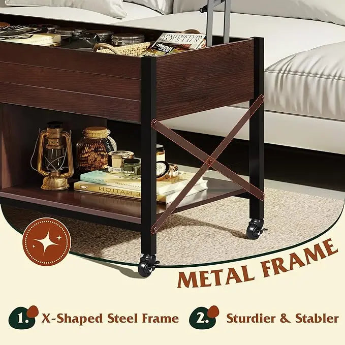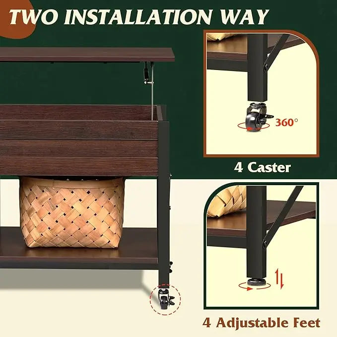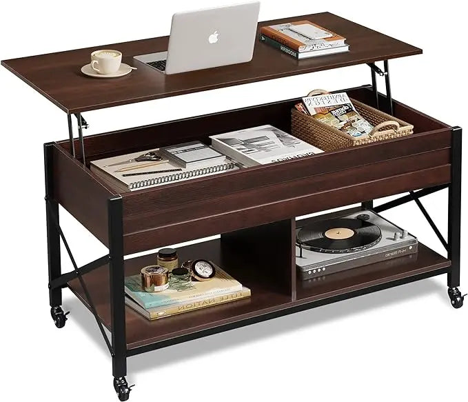 About This 【LIFT-TOP Design】 Our coffee table features a sturdy lift-top design that effortlessly raises and lowers with stability and...