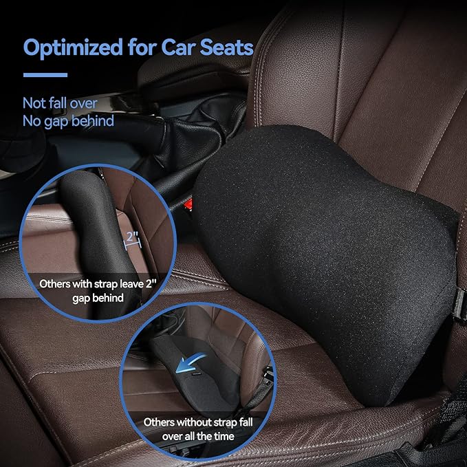 Lumbar Support Pillow – Memory Foam Lumbar Pillow for Lower Back Support, Back Cushion with Strap for Pain Relief, Perfect Lumbar Support Pillow for Office Chair, Car Seat, Bed, Recliner