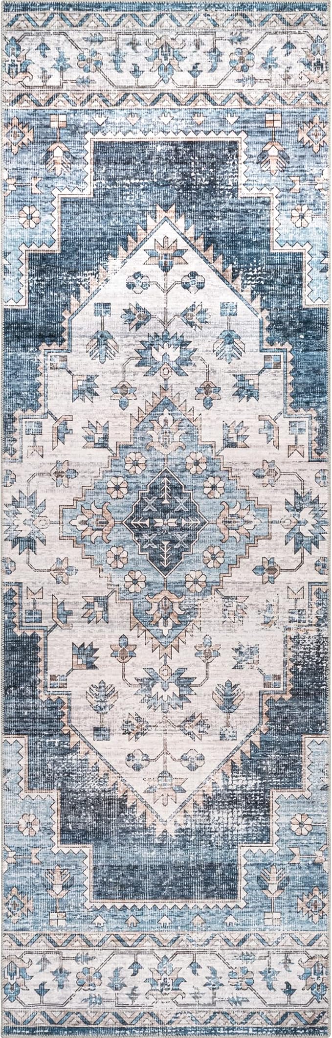 nuLOOM Dania Machine Washable Medallion Ultra Thin Runner Rug, 2' 6" x 6', Navy