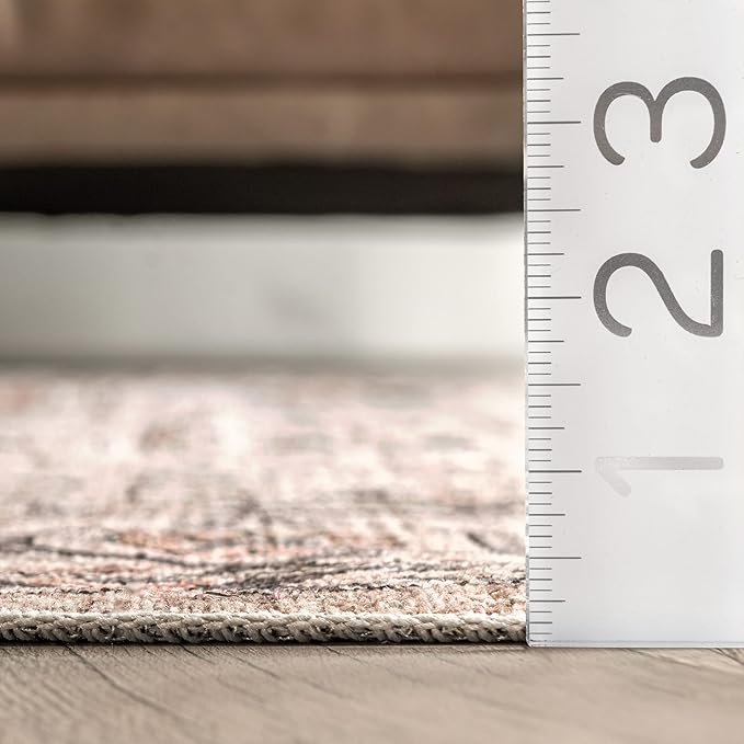 nuLOOM Gwyn Distressed Machine Washable Ultra Thin Runner Rug, 2' 6" x 10', Beige