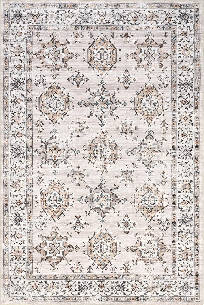 nuLOOM Finley Machine Washable Vintage Distressed Ultra Thin Accent Rug, 3' x 5', Ivory