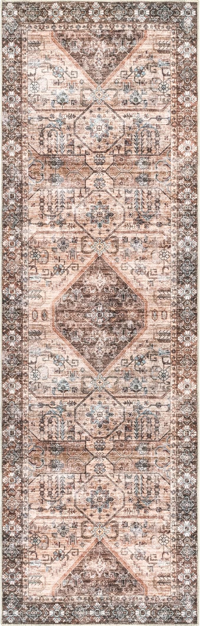 nuLOOM Devin Machine Washable Vintage Medallion Ultra Thin Runner Rug, 2' 6" x 12', Light Brown