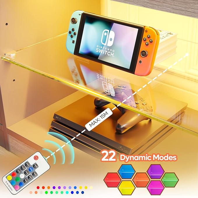 About This [Large Gaming TV Stand]: Bestier modern TV stand with LED Lights provides you excellent & immersive watching or...