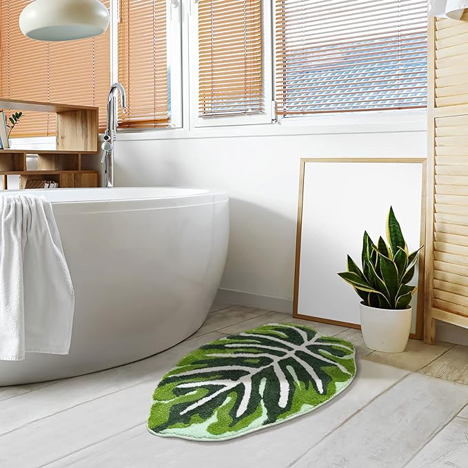 Kids Rug Green Leaf Area Rug for Nursery Cute Bath Mat Non Slip Small Preppy Carpet for Bedroom Bathroom Children Playroom Boho Home Decor Washable 2'x2.6'
