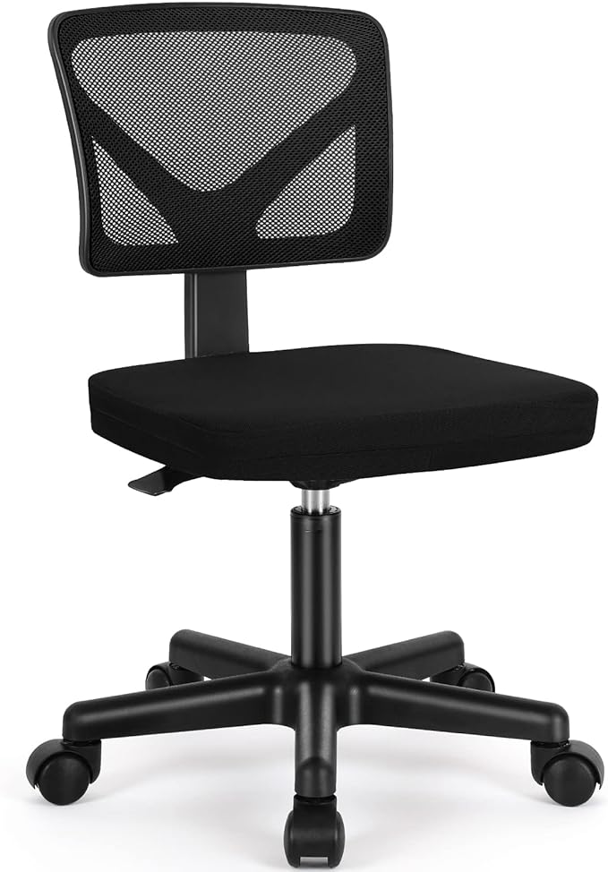 Armless Small Home Office Desk Chair, Ergonomic Low Back Computer Chair, Adjustable Rolling Swivel Task Chair with Lumbar Support for Small Space, 1 Pack