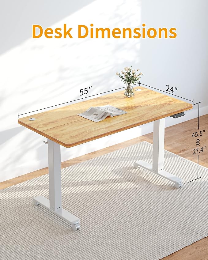 CubiCubi Electric Standing Desk, 55 x 24 Inches Height Adjustable Sit Stand Desk, Ergonomic Home Office Computer Workstation, Light Rustic Brown