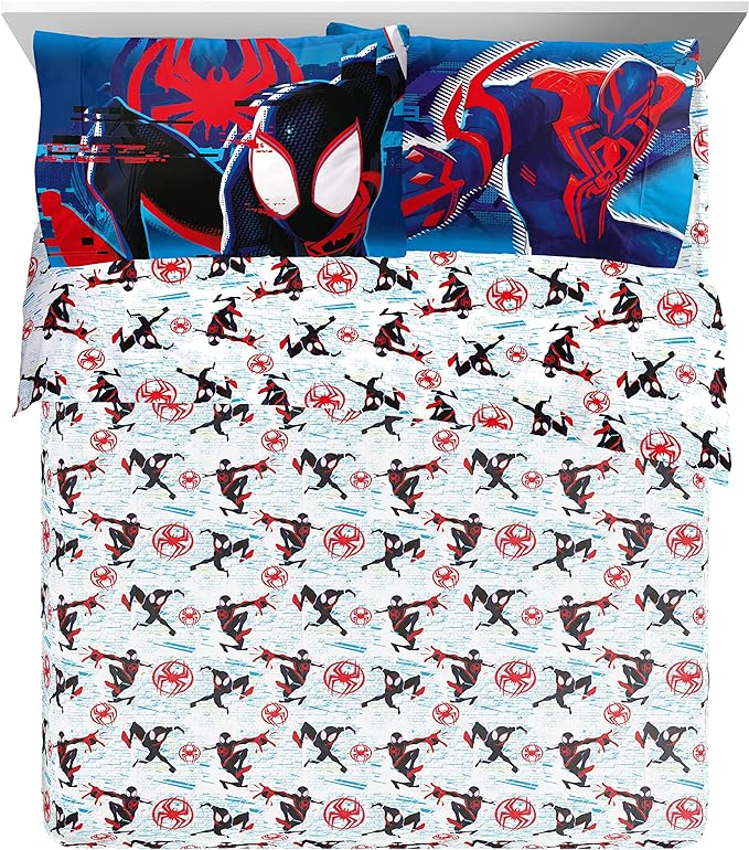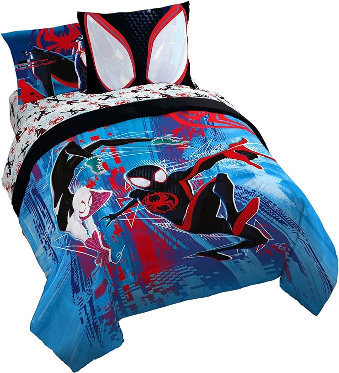 Marvel Spiderman Across The Spider-Verse Glitch 7 Piece Queen Size Bed Set - includes Comforter & Sheet Set Bedding - Super Soft Fade Resistant Microfiber (Official Product)