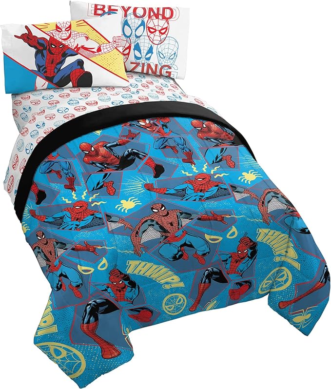 Marvel Spiderman Beyond Amazing 4 Piece Twin Size Bed Set - Includes Comforter & Sheet Set Bedding - Super Soft Fade Resistant Microfiber (Official Product)
