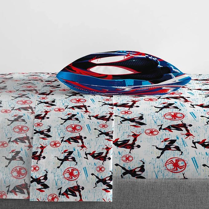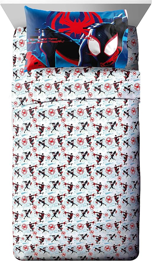 Marvel Spiderman Across The Spider-Verse Glitch 5 Piece Twin Size Bed Set - includes Comforter & Sheet Set Bedding - Super Soft Fade Resistant Microfiber (Official Product)