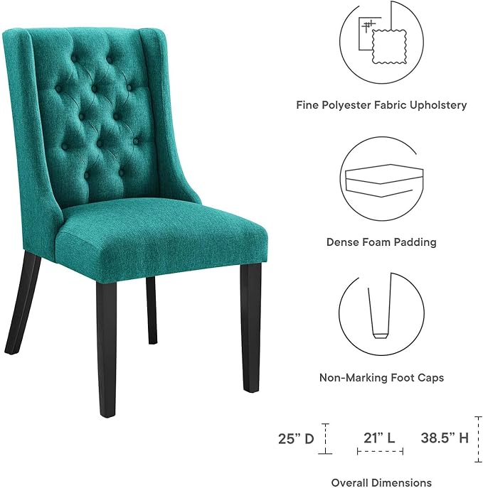Modway Baronet Button Tufted Fabric, One Dining Chair, Teal