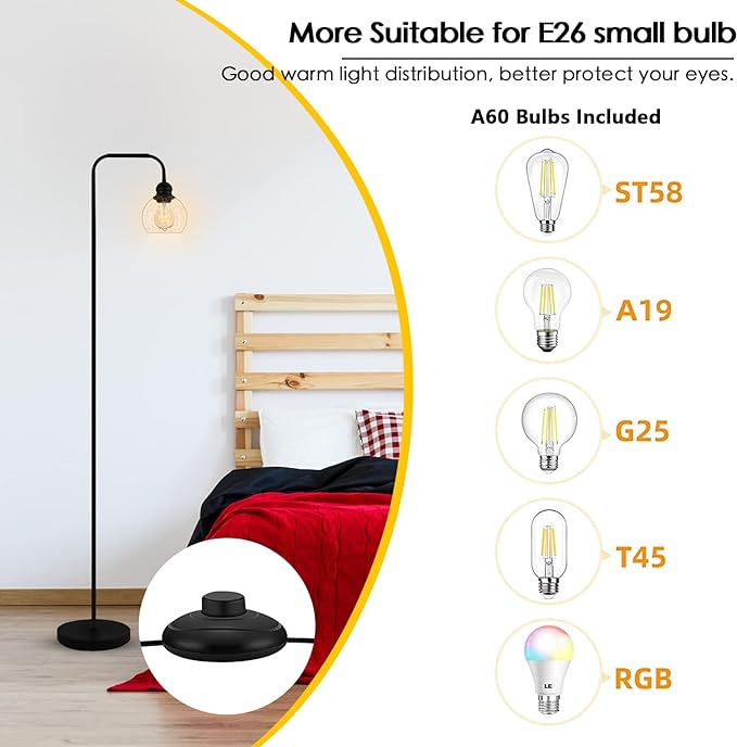 About This 【Fashion Design & Gorgeous Glass Decorate】The LED floor Lamp is 63.2 inches high, with hanging Seeded globe glass...