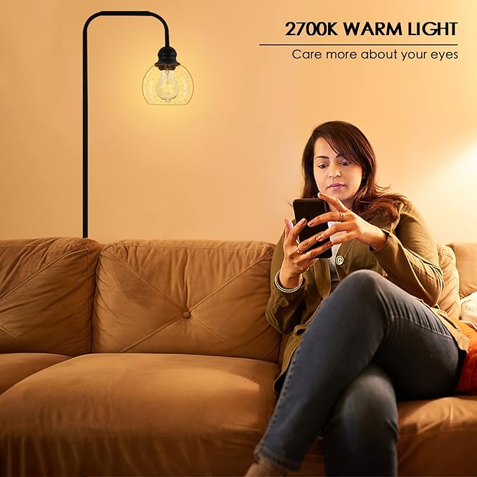Modern Floor Lamp for Living Room with 6W LED Bulb, Industrial Floor Lamp, Seeded Glass, Black Classic Reading Tall Lamp for Home Office, Standing Lamps for Bedroom, Minimalist, Vintage, Farmhouse