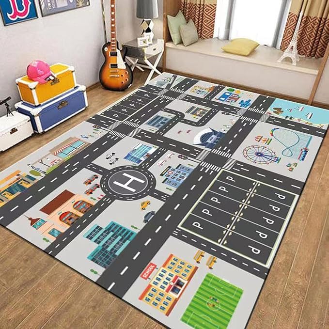 Kids Rug Play Mat Great for Playing with Cars and Toys,Educational Kid Road and Traffic City Life Carpet,Children Baby Fun Throw Rug for Bedroom Play Room,35X59Inch/90X150CM