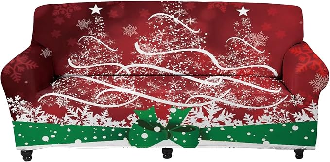 FKELYI Xmas Tree Snowflake Pattern Christmas Decor Stretch Sofa Slipcover Soft Comfort Cushion Cover Washable Furniture Protector-M
