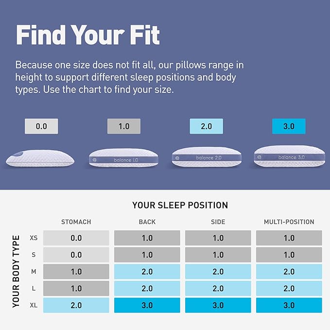 Bedgear Balance Performance Pillow - Size 1.0 - Moisture Wicking Bed Pillow - All Sleep Positions - Medium Firmness Sleeping Pillow - Hypoallergenic, Washable Removable Cover - 20" W x 26" L x 5.25" H