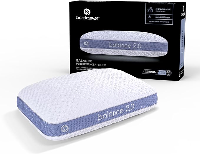 Bedgear Balance Performance Pillow - Size 2.0 - Moisture Wicking Bed Pillow - All Sleep Positions - Medium Firmness Sleeping Pillow - Hypoallergenic, Washable Removable Cover - 20" W x 26" L x 5.75" H