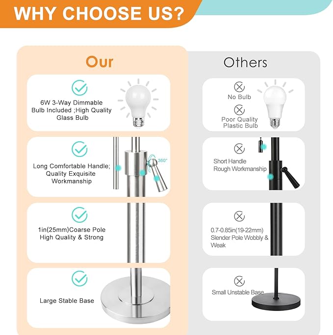 About This Modern Floor Lamp: The metal standing lamps adopts silver lamp pole and base, overall body silver presents a...