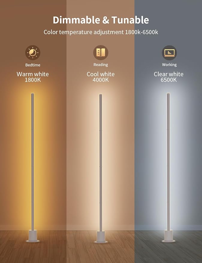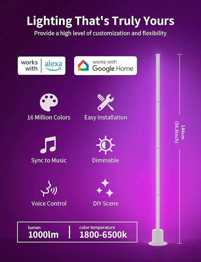 Smart Corner Floor Lamp - LED Floor Lamp with Alexa and App Control, 16 Million DIY Colors, Music Sync, DIY Color Modes,Timer Setting, Suitable for Living Room and Bedroom