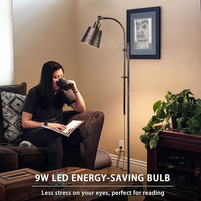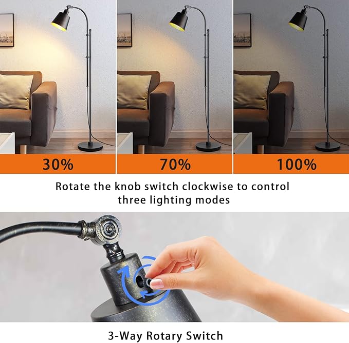 Floor Lamp, Industrial Floor Lamps for Living Rooms & Bedrooms - Rustic Farmhouse Reading Lamp Standing, Adjustable Metal Heads Indoor Task Lighting for Living Room Office Home Décor (Black01-3S)