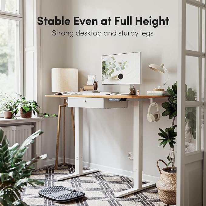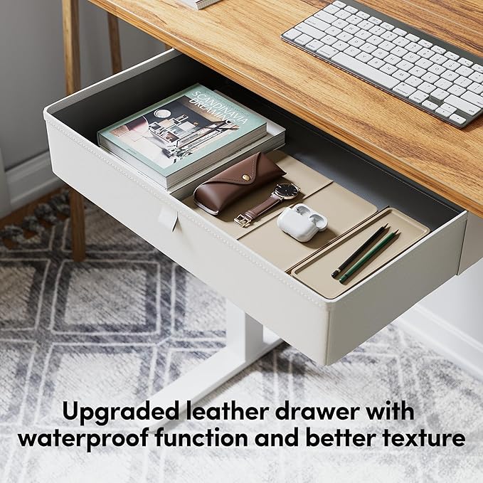 BANTI Electric Standing Desk with Drawer, Adjustable Height Sit Stand Up Desk, Home Office Desk Computer Workstation, 48x24 Inches, Ligh Vintage Brown