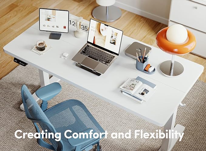 BANTI 55'' Standing Desk, Electric Stand up Height Adjustable Home Office Table, Sit Stand Desk with Splice Board, White