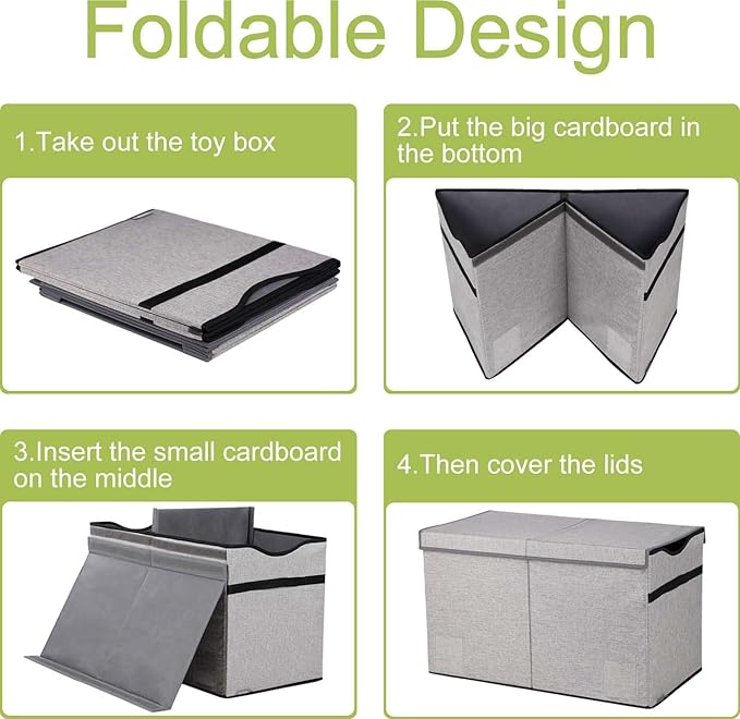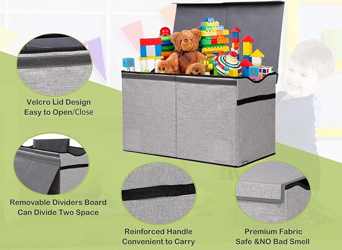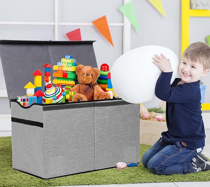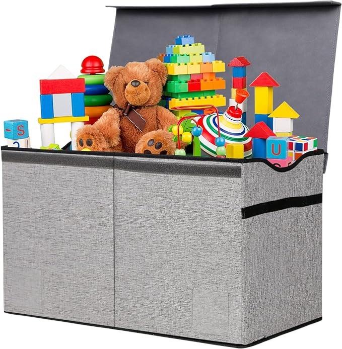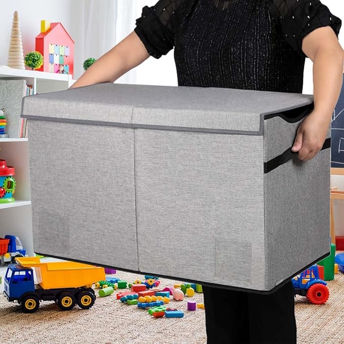 Toy Box Chest, Collapsible Sturdy Storage Bins with Lids, Extra Large Kids Toy Storage Organizer Boxes Bins Baskets for Kids, Boys, Girls, Nursery Room, Playroom, Closet (Fine Linen Gray)