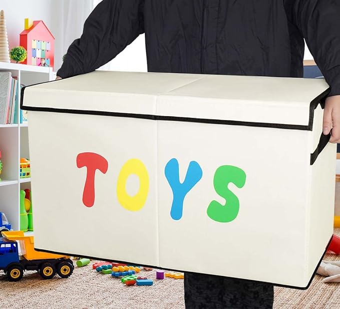 Toy Box Chest, Collapsible Sturdy Storage Bins with Lids, Extra Large Kids Toy Storage Organizer Boxes Bins Baskets for Kids, Boys, Girls, Nursery Room, Playroom, Closet (New Beige)