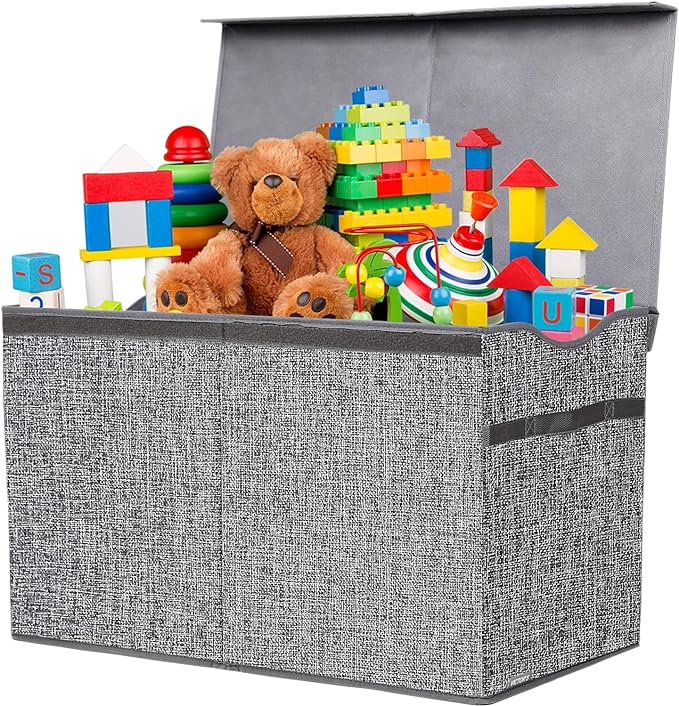 Toy Box Chest, Collapsible Sturdy Storage Bins with Lids, Extra Large Kids Toy Storage Organizer Boxes Bins Baskets for Kids, Boys, Girls, Nursery Room, Playroom, Closet (Linen Gray)