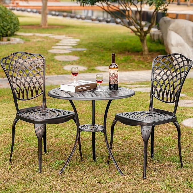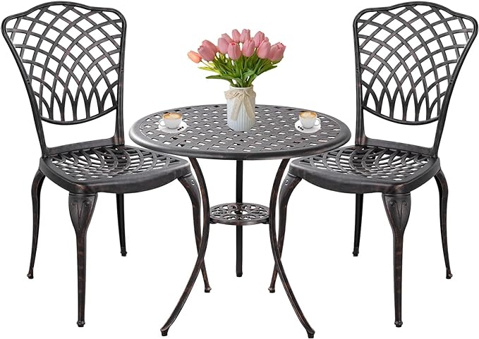 About This 【Durable Cast Aluminum Bistro Set】: Bistro set 3 piece outdoor is made of durable cast aluminum material. It...