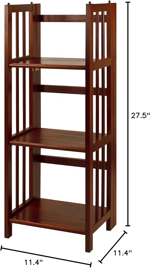 Casual Home 3-Shelf Folding Stackable Bookcase (27.5" Wide)-Walnut & 3-Shelf Folding Bookcase (14" Wide)-Walnut