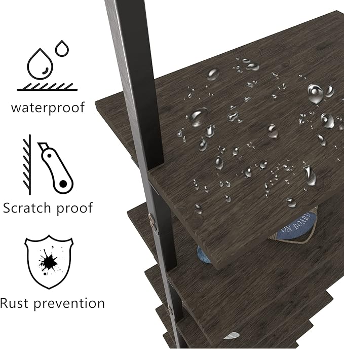 About This ✔FOR SMALL PLACE This wall-mounted, five-tier ladder bookshelf is perfect for adding storage to a small area. The...