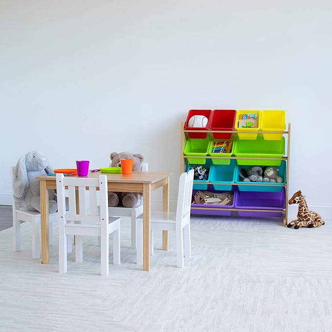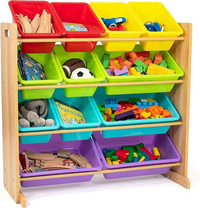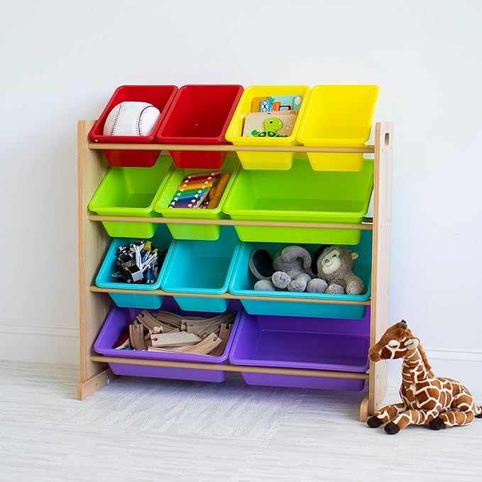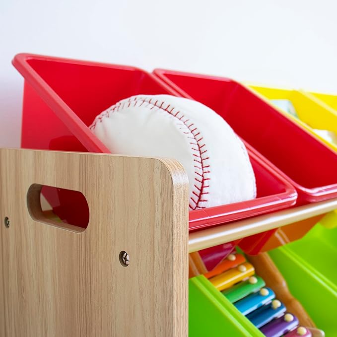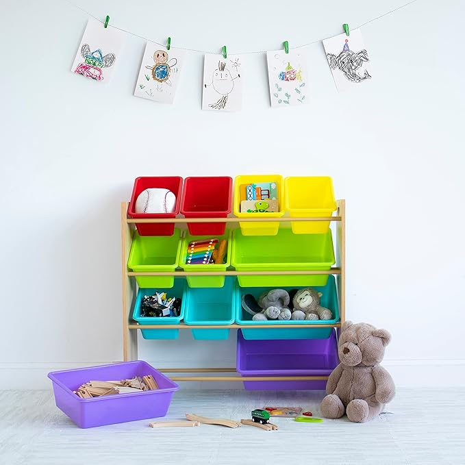 Humble Crew Kids Toy Storage Organizer with 12 Storage Bins, Rainbow/Natural Wood