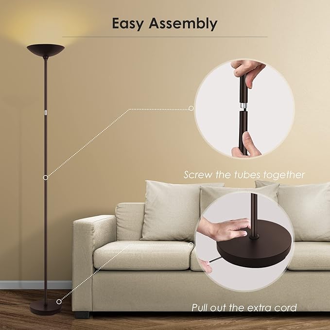 About This Stepless Dimming and Touch Control; This LED floor lamp is designed with a step-less dimer and controlled by...